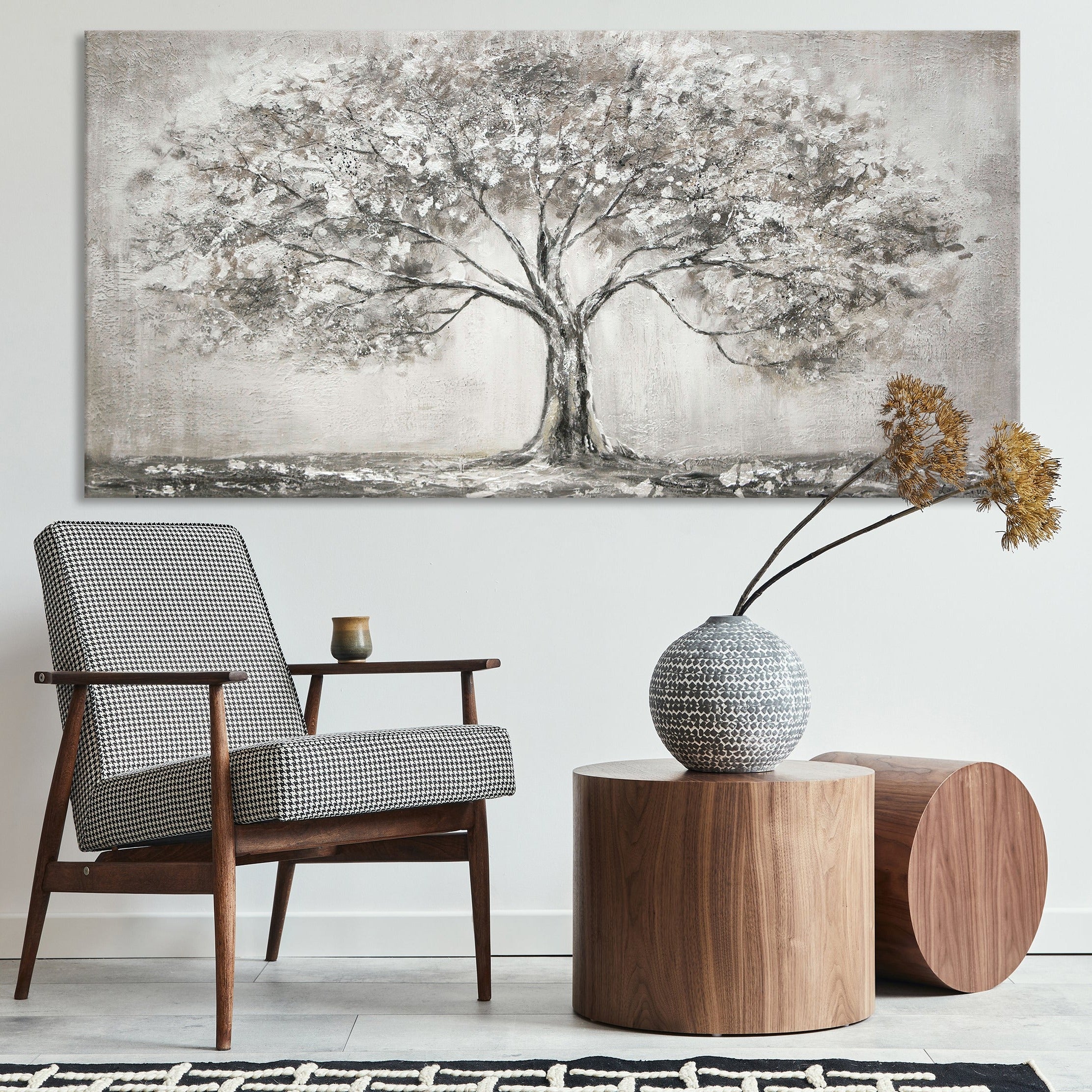 • handgemalte bilder auf leinwand Detail der strukturierten Leinwandoberfläche am Baumstamm